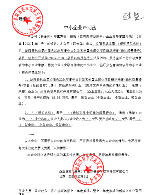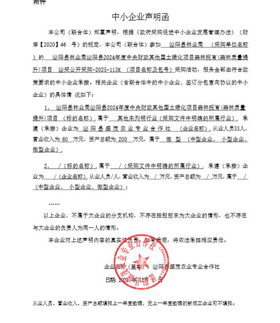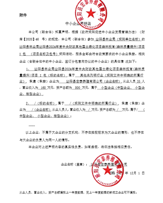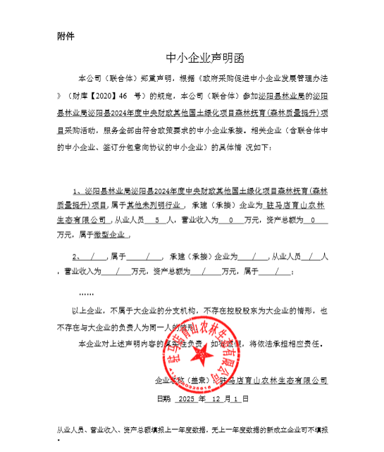 1 ******林业局泌阳县2024年度中央财政其他国土绿化项目森林抚育(森林质量提升)项目 F 包 详见招标文件 合格,符合国家及行业标准 20 日历天 合格,符合国家及行业标准