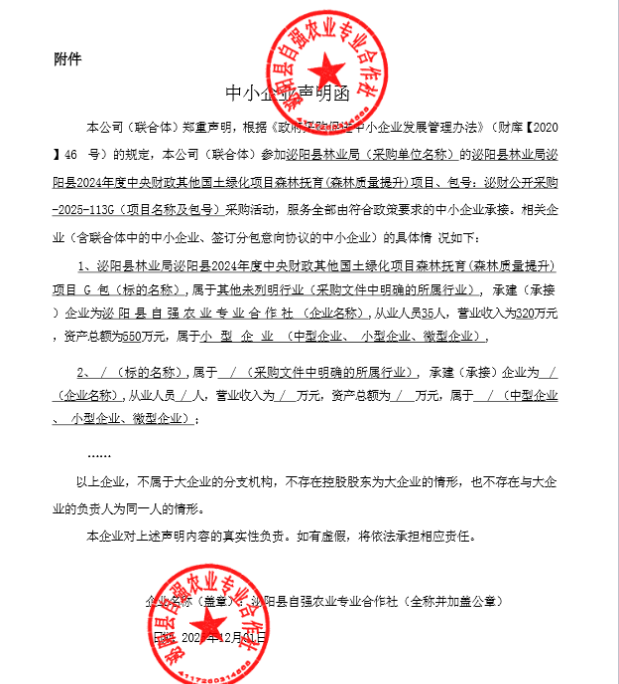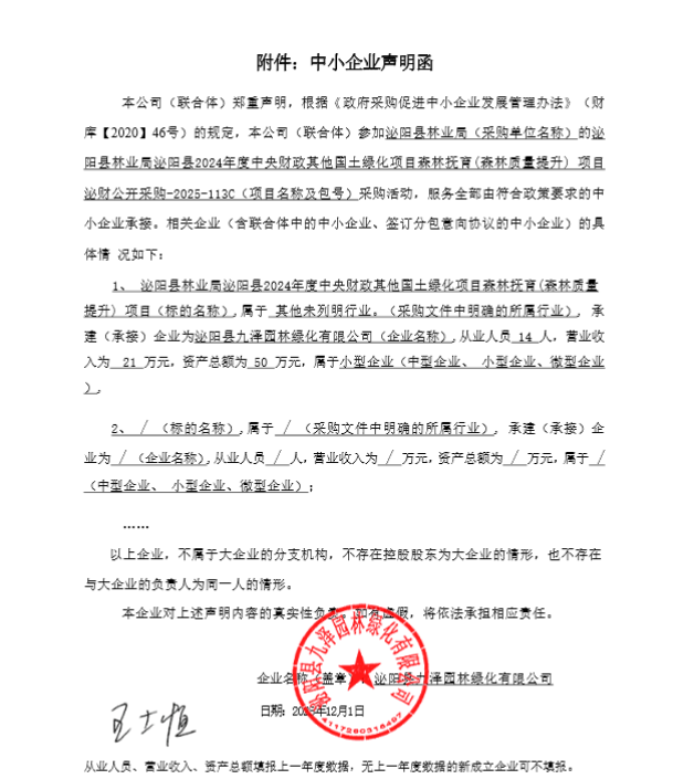 1 ******林业局泌阳县2024年度中央财政其他国土绿化项目森林抚育(森林质量提升)项目 J 包 详见招标文件 合格,符合国家及行业标准 20 日历天 合格,符合国家及行业标准